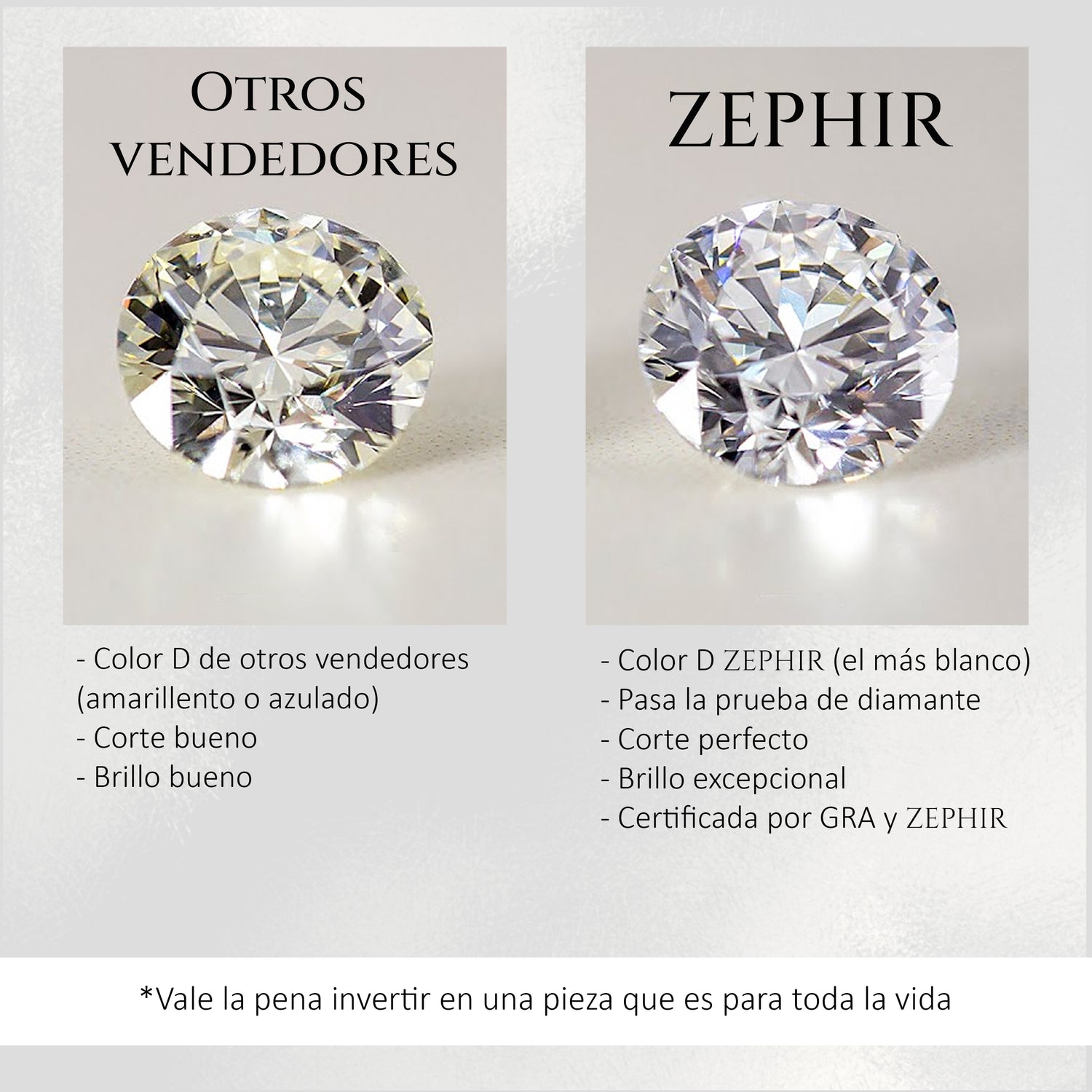 La moissanita Zephir es la piedra preciosa más brillante que existe (la única que supera el brillo del diamante). Comparte todas sus propiedades fisicas como lo es su dureza, brillo, color.