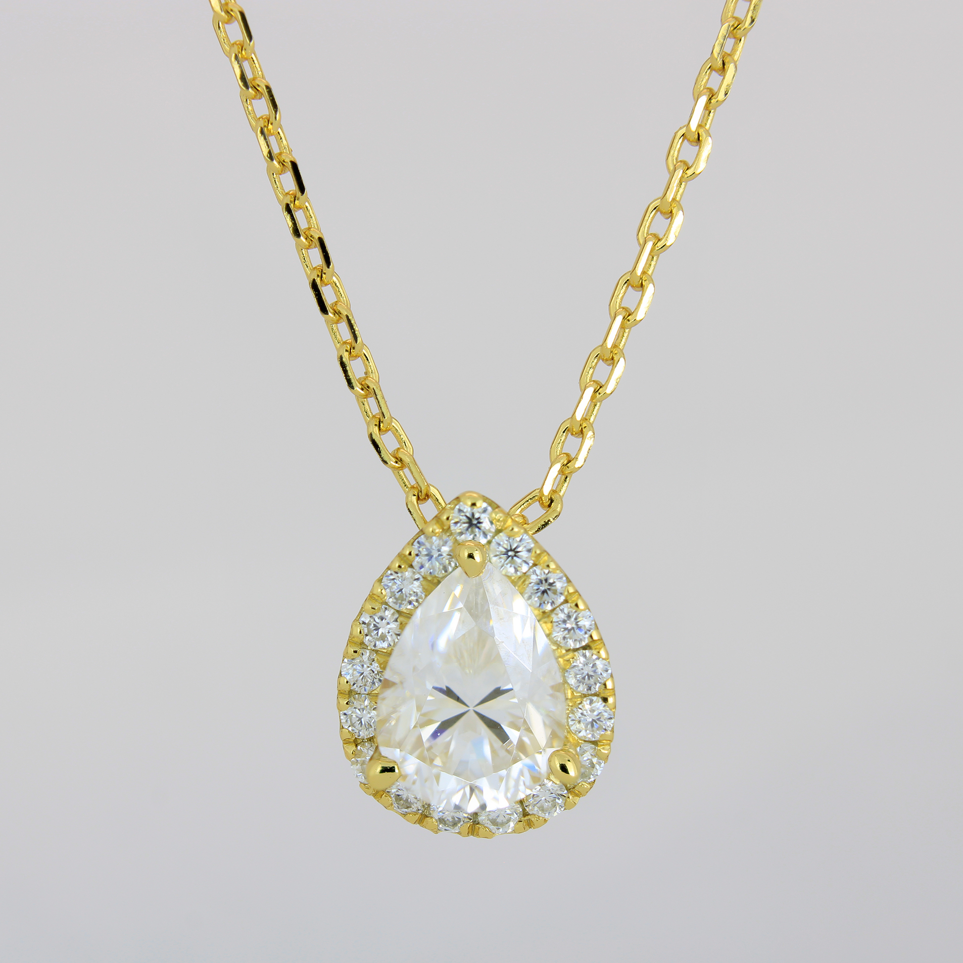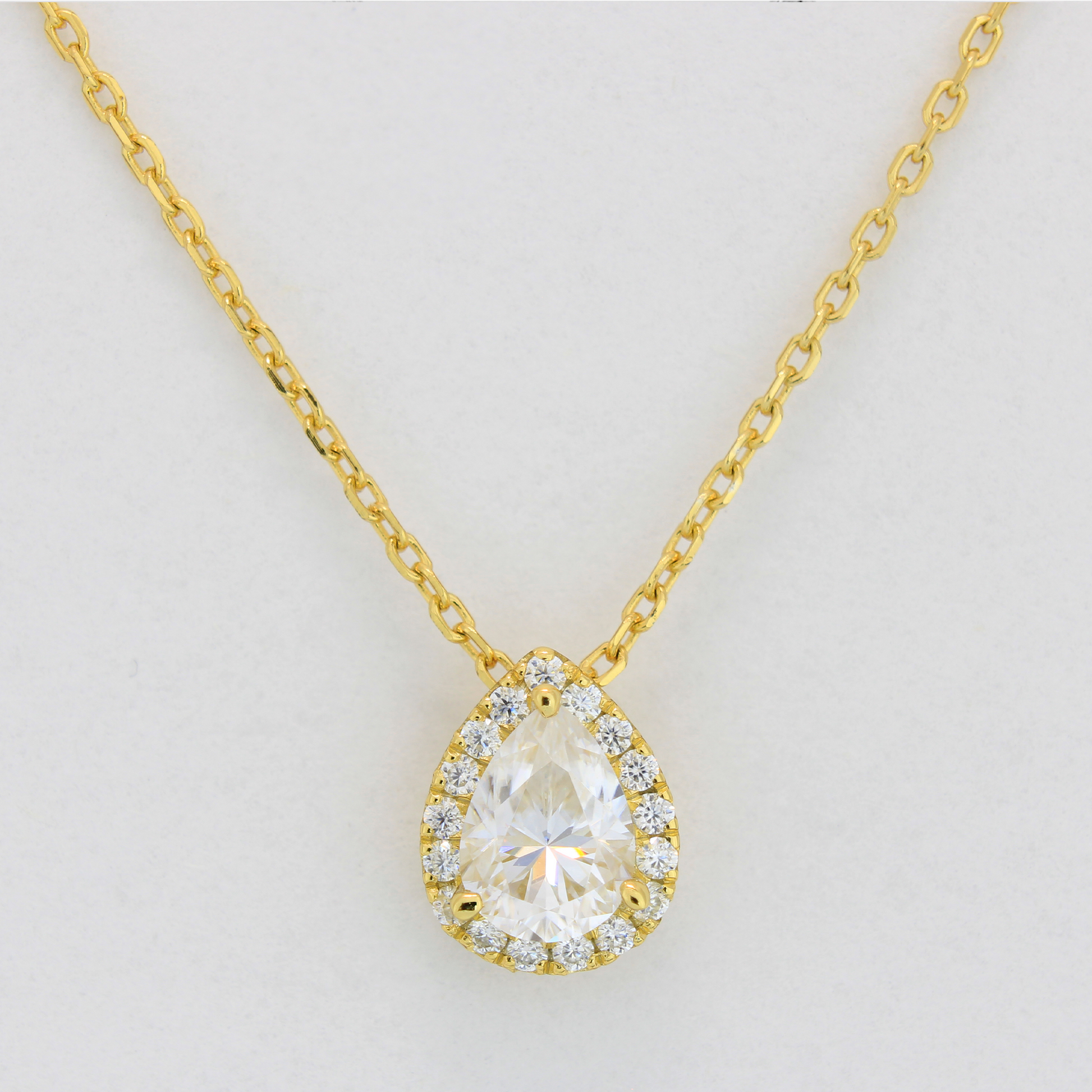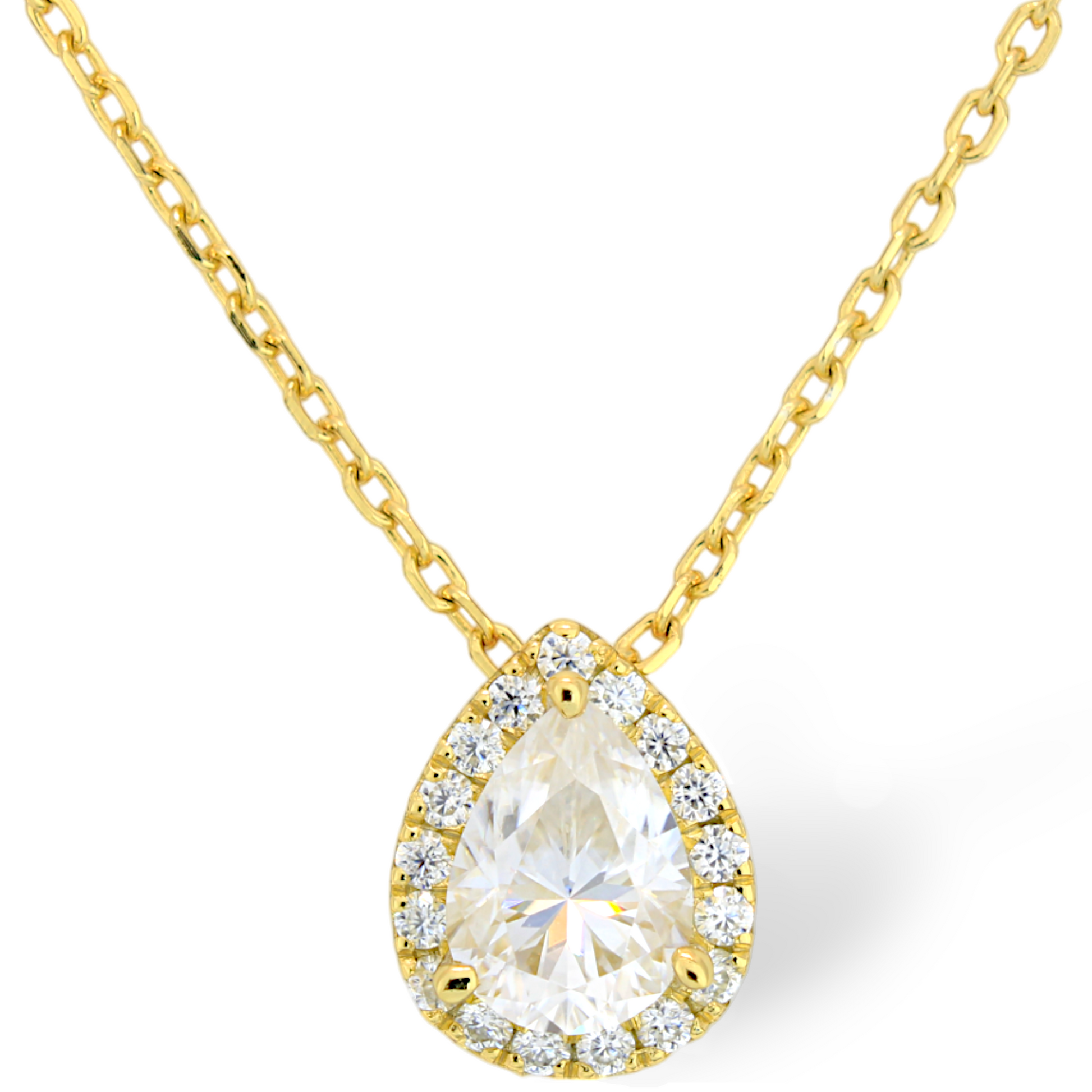 - Collar con piedra central de 1ct en corte pera en color D, claridad FL-VVS1