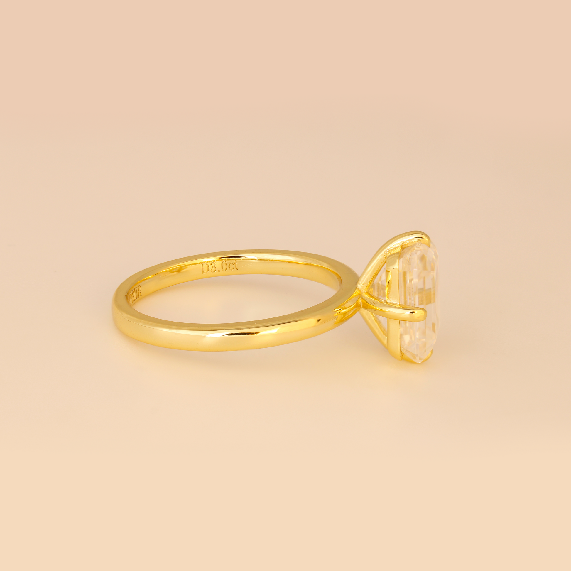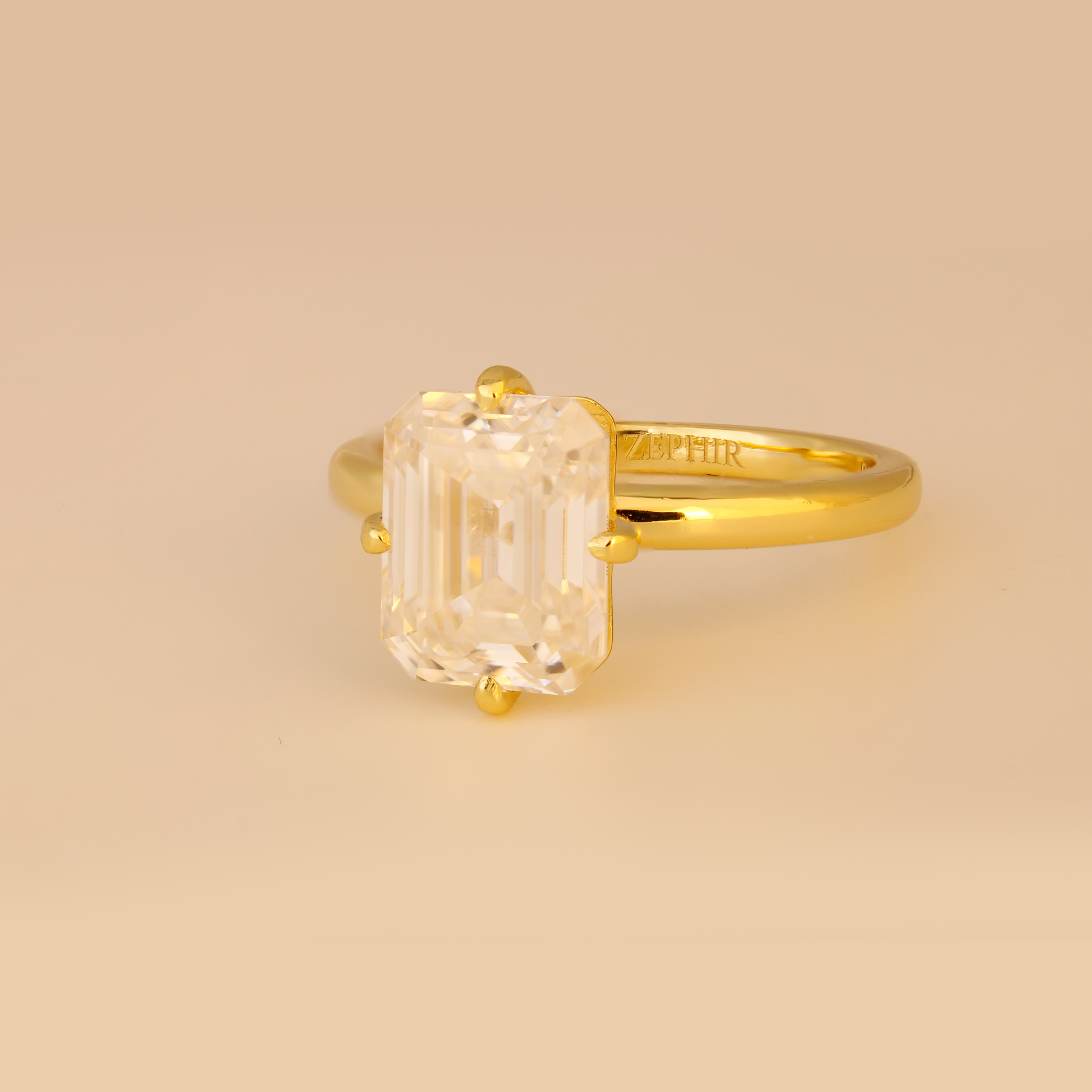 Descubre nuestro Anillo de compromiso Jêr de Zephir Jewelry de 3ct de moissanita. Nuestro anillo que destaca por su piedra central en corte esmeralda de gran tamaño y su montura original de alta calidad excepcional, con el color y balance perfecto.