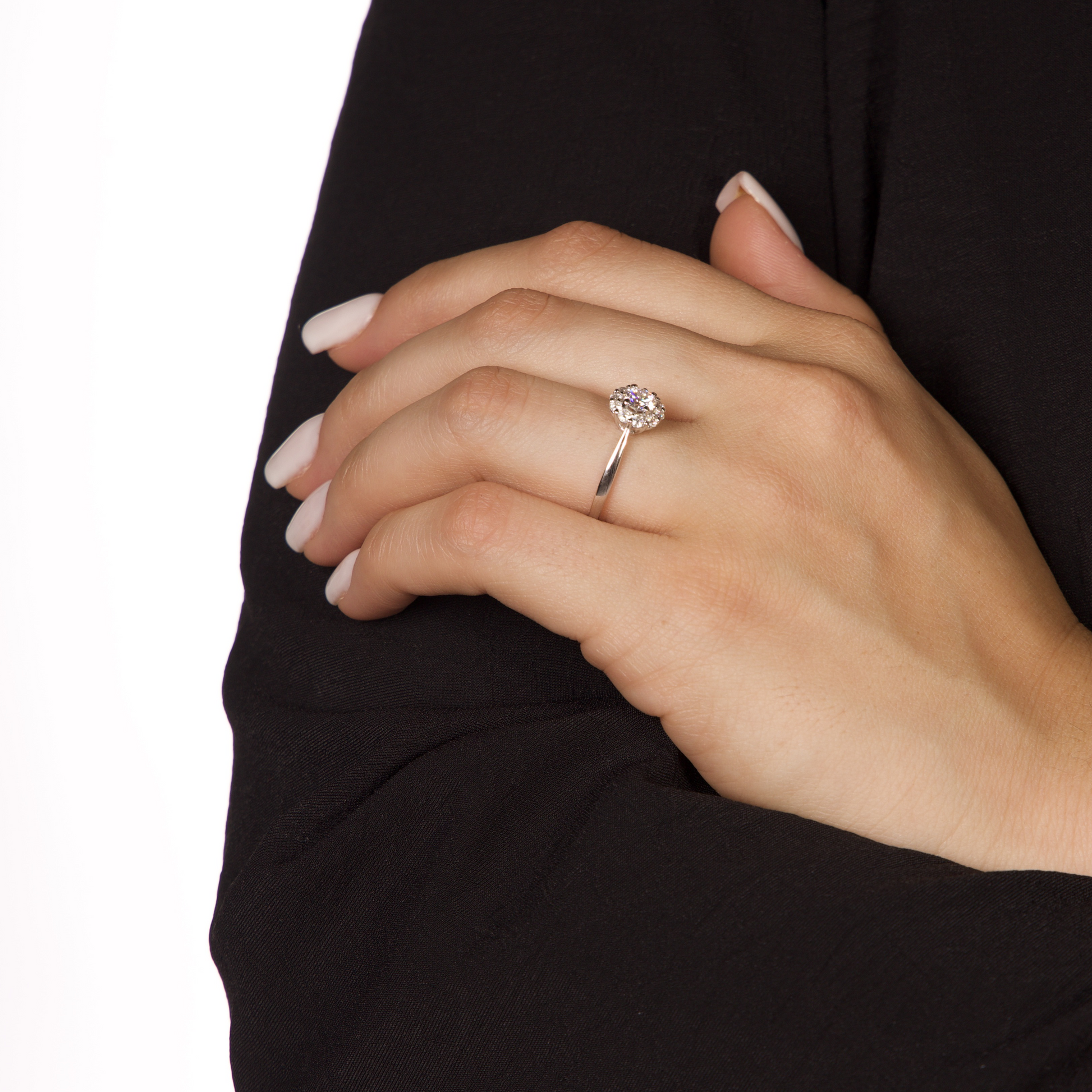 - Piedras que adornan la piedra principal con un peso de 0.24ctw.
