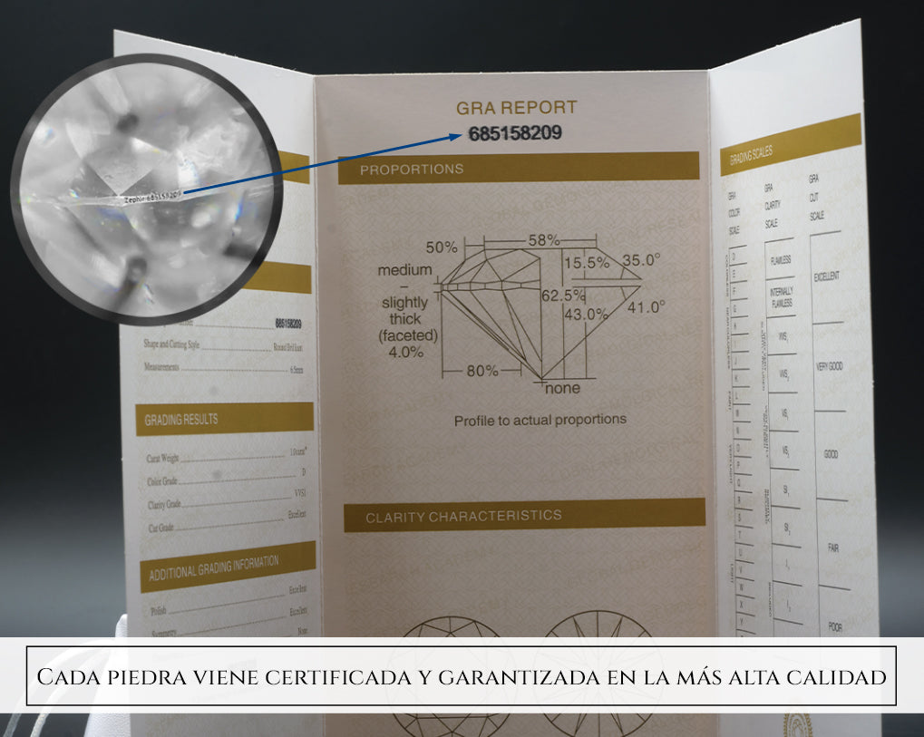- Certificado de autenticidad de moissanita de GRA (certificado real a diferencia de otros en el mercado).