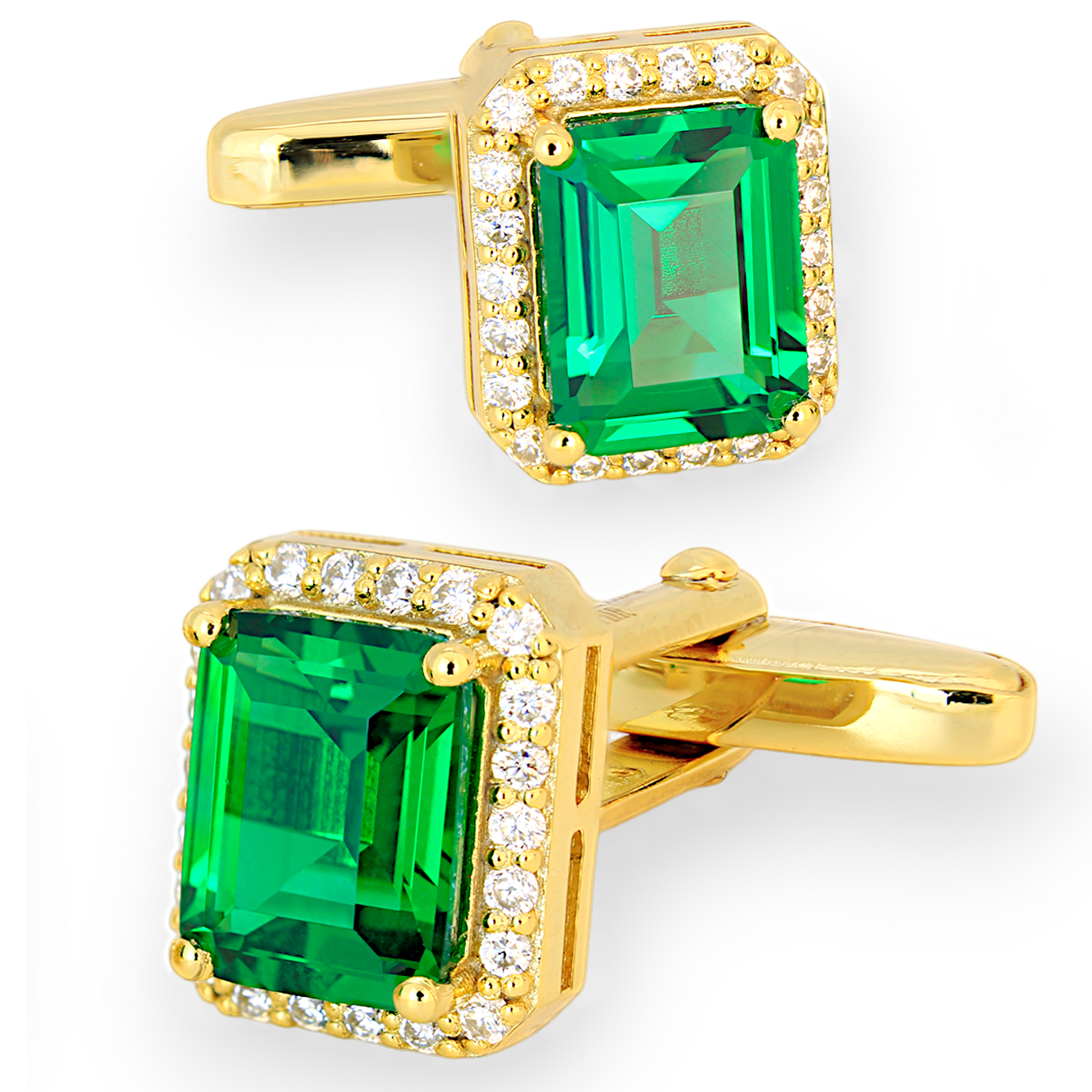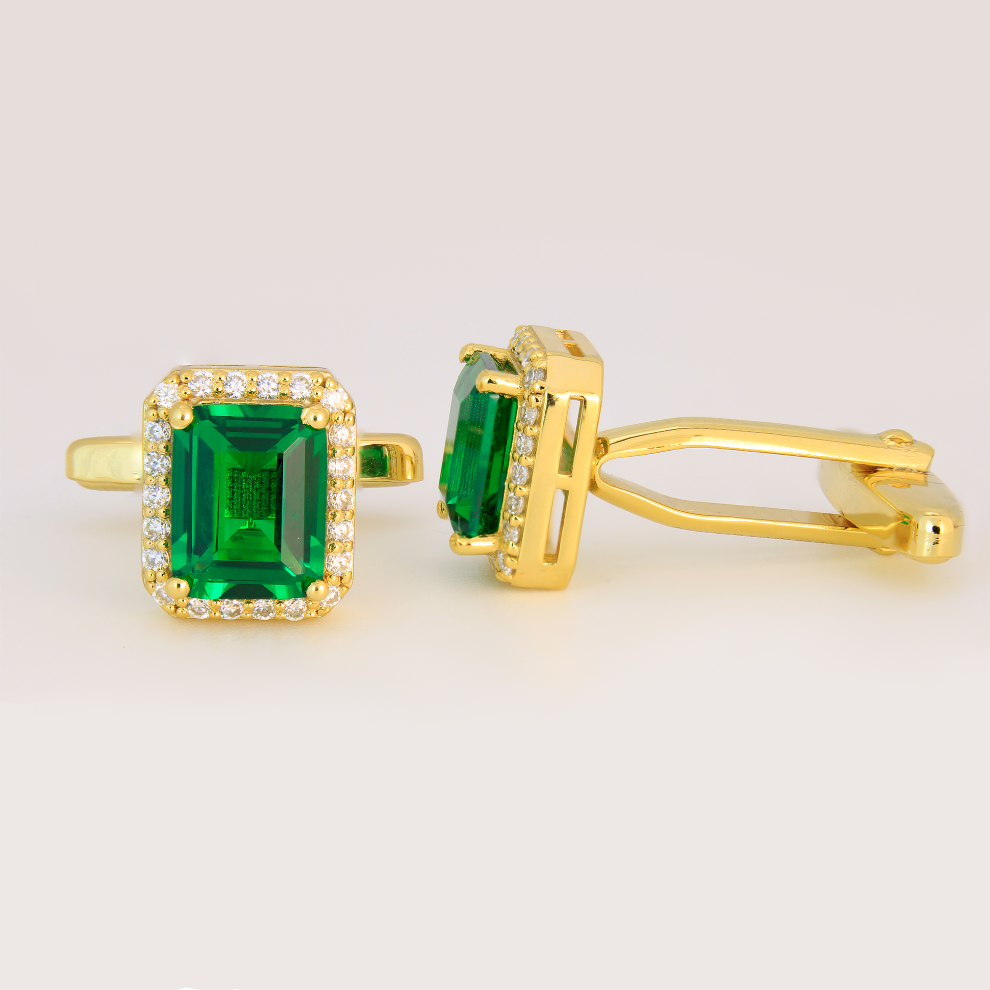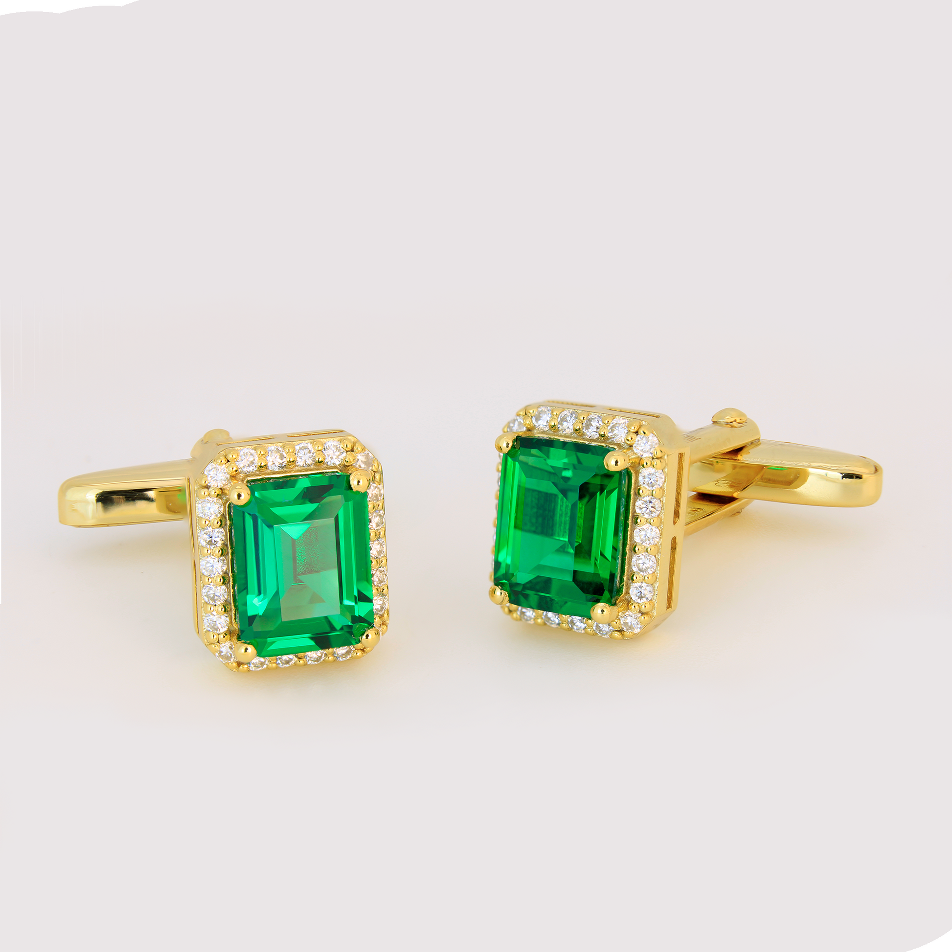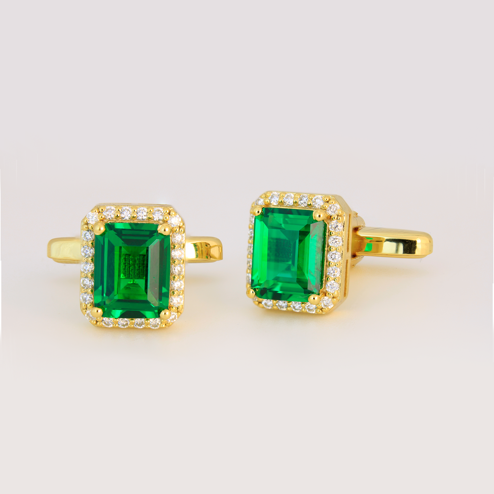 Descubre nuestras Mancuernillas (Gemelos) Taelis de Zephir Jewelry de 6.4ctw de esmeralda y moissanita. Nuestras piezas destaca por sus piedras centrales en corte esmeralda de 3ct cada una con color y corte excepcional. Lucelas con tus camisas y sobresal con lujo y estilo.